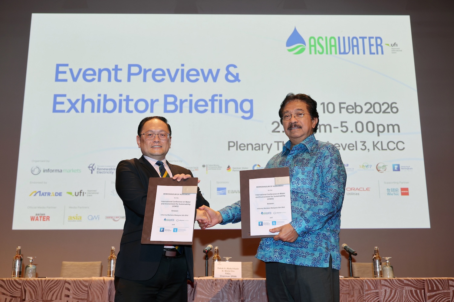 In a highlight moment during the media briefing, Informa Markets and the University of Nottingham Malaysia formalized their collaboration with an on-stage Memorandum of Agreement (MOA) exchange for ICWES 2026. The exchange was represented by Tan Sri Abdul Rahman Mamat, Chairman of Informa Markets Malaysia, and Professor Ir. Ts. Dr. Teo Fang Yeon of the University of Nottingham Malaysia. The ceremony symbolised a shared commitment to advancing academia-industry collaboration, driving research-led innovation, and accelerating sustainability initiatives within the water and environmental sectors across the region.